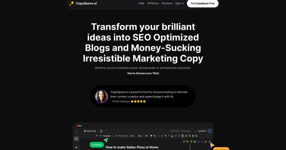 CopySpace specializes in writing marketing blogs and copy, crafted to drive the highest possible return on investment. With a seasoned digital marketer available 24/7, this is super simple: just select a topic and tweak our outline—then hit magic button! CopySpace’s AI-powered text editor uses the world’s best copywriting models, from GPT-3. 5 Davinci to GPT-4—customize your shortcuts and swiftly move around documents with ease. Autowriter is a star feature. In just minutes, Autowriter can generate an entire post (of up to 8000 words) from scratch. Just feed in your keywords and background information, and watch the magic happen. Rearrange and fine-tune with drag-and-drop features and rewrite sections instantly. Works seamlessly with over 100 languages, including English, German French Spanish and Japanese. You can now create content in your preferred language effortlessly—and reach a global audience Use 100+ ready-made AI blogging & marketing tools to find the best prompt for each project. Then let your tool teach you how to write amazing content. Organize your files and folders, apply colors to text and backgrounds to add visual interest, customize shortcuts for faster navigation.