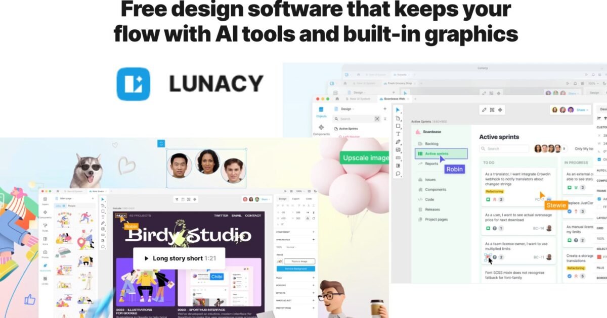 Lunacy is a free design software with AI Tools and built-in custom graphics for creative flow Auto layouts, import from Figma, and a bunch of productivity boosters. Available on macOS, Windows, and Linux All the Must-Haves of a professional design app with a UX/UI design app that combines a variety of capabilities with new and innovative features: Auto Layout: Constraints and rules enable you to create flexible responsive designs by defining how elements should behave. Import from Figma: Free, fast, and accurate Figma to . sketch converter. Online and Offline Modes: Work from the office or stay productive while you work remotely. Prototyping: Speed tests your ideas like never before. It’s time to transform ideas into clickable prototypes. Linked Design:With Lunacy, you can change live web pages without requiring coders. Insert links to visual elements into HTML code and update those elements whenever you want. Image Upscaler: Enlarge images and enhance their resolution. Background Remover: Make the background transparent in any photo. Text Generator: Generate placeholder texts for your interfaces. Avatar Generator: Instantly create user avatars for contact lists, testimonials, etc.