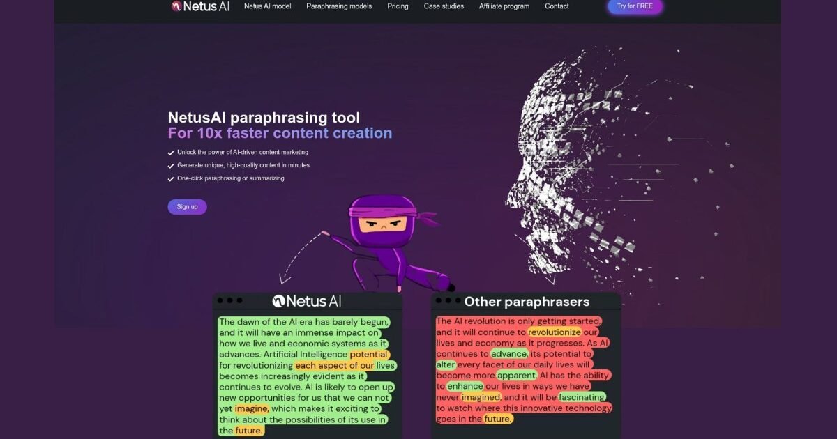 Unlock high-quality, original content in minutes with Netus AI's advanced paraphrasing tool. Effortless integration, 10x faster content generation, and 99.97% success rate against plagiarism detectors.