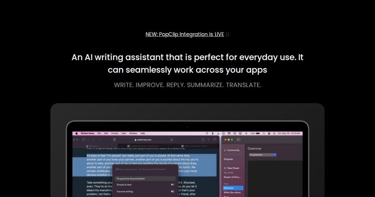 Writers Brew is the ultimate app for everyday writing that smoothly turns your rough notes into polished drafts. Say goodbye to the limitations of other AI writing assistants that confine you to a single platform. Features: -Wide Range of Writing Tools: These tools are designed to jumpstart your creativity and help you write with precision. -Build Your Own Presets (BYOP): Allows you to unleash your creativity and align the assistant with your unique writing style and preferences. -AI-Powered Text Editor: Transform your ordinary text editor into an AI-powered tool that helps you brainstorm, get inspired, conduct research, and write your first draft seamlessly. -Smart Reply for Emails: Writers Brew not only generates text for email replies but also creates draft emails within your email client. -Image (OCR) to Text: This feature eliminates the need for manual transcriptions and makes your writing process more efficient. -Translation Made Easy: Effortlessly translate text from one language to another, expanding your communication reach. -Personalized Suggestions and Edits: Enhance your content and elevate your writing skills with insightful recommendations.